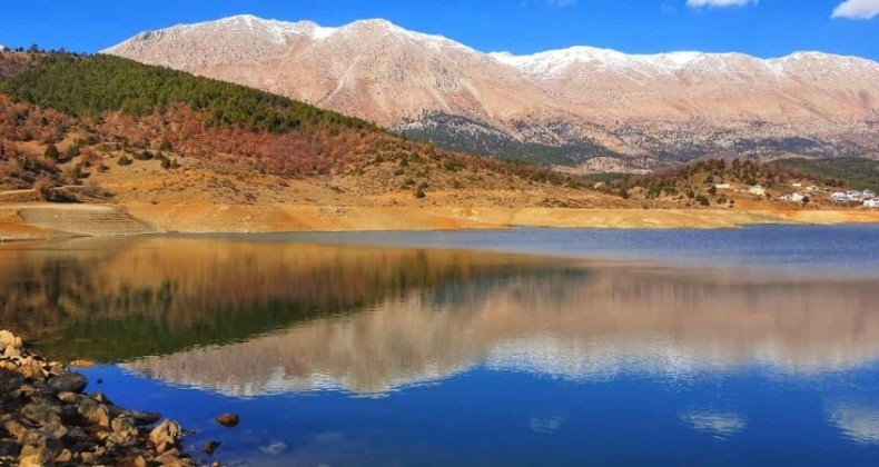Adana’nın kuzeyinde bulunan Tufanbeyli ilçesinin Kürebeli Yaylası kışın ortasında eşsiz manzaralar sunuyor. Dağdaki kar ile kurak geçen kış nedeniyle henüz yeşil kalan bozkırların doğal gölet ile buluşması görenleri hayran bıraktı.