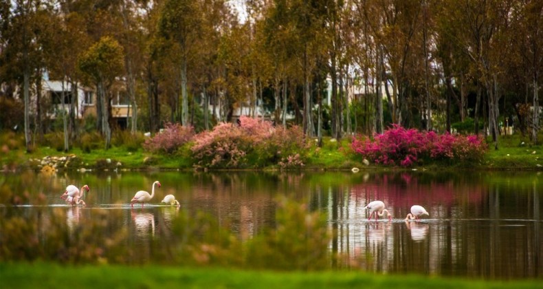 Aliağa ilçesi plajlar mevkiinde bulunan ve Türkiye’deki 447 kuş türünden 123’üne ev sahipliği yapan Aliağa Kuş Cenneti’ndeki flamingolar, rengarenk görüntüler oluşturuyor. Yazın ayrı kışın ayrı bir güzelliğe sahip olan Aliağa Kuş Cenneti, kartpostallık görüntüsü ile ziyaretçilerine doğal yaşamın tüm güzelliklerini yansıtıyor. 27 hektarlık alanı ile Türkiye’nin en değerli sulak alanlarından olan Aliağa Kuş Cenneti, doğal güzelliği ile dikkat çekiyor.