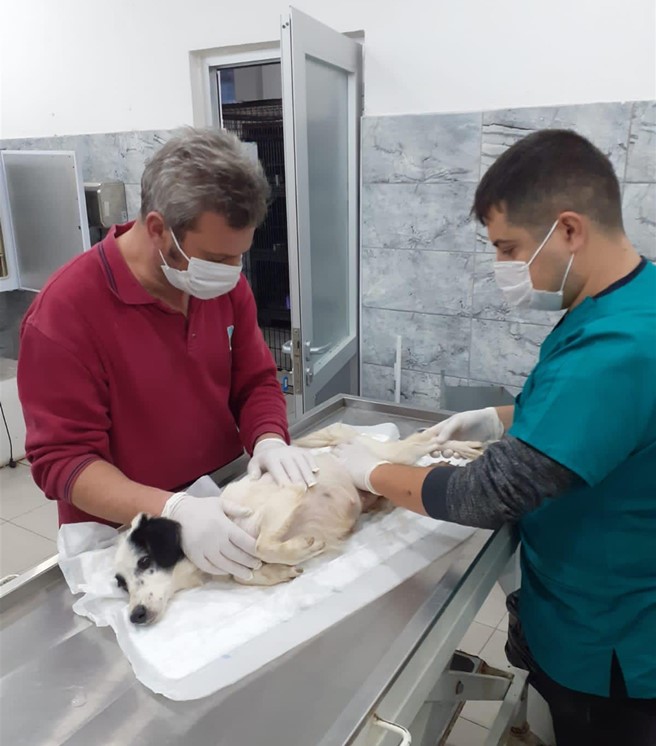Ovaköy Mahallesi’ndeki Balıkesir Sokak Hayvanları Bakımevi’nde Maske’nin 10 Kasım’dan bu yana tedavi sürecini yürüten Veteriner Hekim Oğuzhan Erçel, köpeğin bakım evine geldiğinde durumunun çok ağır olduğunu ve onun yaşam mücadelesini kazanması için ellerinden geleni yaptıklarını söyledi. Veteriner Hekim Erçel, “Kazanın yaşandığı gün olay yerine hemen giderek köpeğimizi alarak bakımevimize getirdik. Köpeğimizin röntgenlerini çektiğimizde kalçasında üç adet kırık olduğunu tespit ettik. Yaklaşık 3 saat süren ameliyatta kalçasına üç plak yerleştirildi. Ameliyatı kaldırması bile bir olaydı onun için kendisi de yaşama tutunmak için çok mücadele etti. Tedavimiz güzel bir şekilde devam ediyor Maske artık hem yürüyebiliyor hem de koşabiliyor. Tam bir iyileşme için önümüzde biraz daha zaman var” dedi. Veteriner Hekim Oğuzhan Erçel havalı Maskenin tüfek ile daha önce vurulduğu ve röntgendeki paraşüt pelet riskli bir yerde olduğu için çıkarılmadığını ve köpek için bir sorun teşkil etmediğini açıkladı.