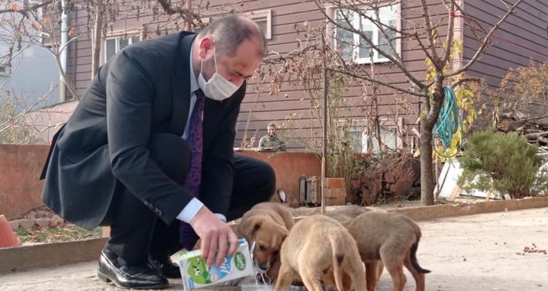 Orhaneli Belediye Başkanı Ali Aykurt, kısıtlamanın uygulandığı saatlerde sokak köpeklerini sütle besledi.