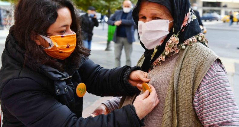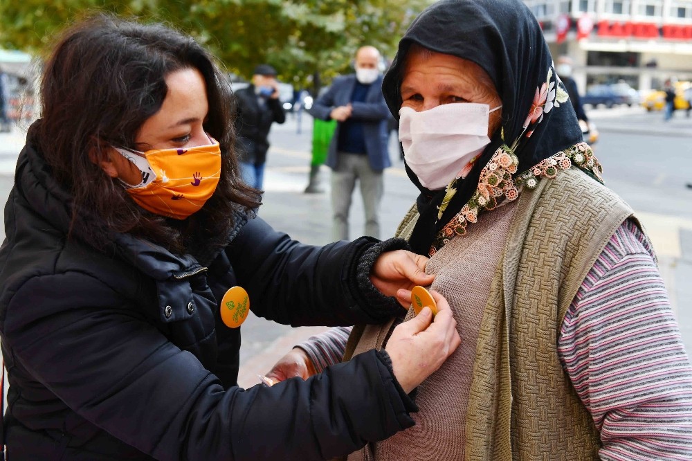 Ankara Büyükşehir Belediyesi, kadına yönelik şiddetin önlenmesi, kadın haklarının korunmasına yönelik farkındalık çalışmaları kapsamında Çankaya ve Yenimahalle Belediyesi ile de ortak bir çalışmaya imza attı. Kızılay’da gerçekleşen etkinlikte kadına yönelik şiddete karşı farkındalık oluşturmak amacıyla kurulan stantta kadın hakları konusunda bilgilendirici broşür ve dergiler ile maske dağıtıldı. Balonlar ve rozetlerle karşılanan vatandaşlardan Ömer Hüsöz, “Kadına karşı şiddeti her zaman kınıyorum. Belediyenin bu duyarlı hareketi ve farkındalık çalışmaları için teşekkür ederim” derken, Ankara Büyükşehir Belediyesi Kadın Çalışmaları Birim Şefi Şenay Yılmaz ise, “Büyükşehir Belediyesi olarak Çankaya Belediyesi ve Yenimahalle Belediyesi ile beraber şiddete yönelik farkındalık oluşturmak için bir stant açtık. Burada bulunan herkese turuncu maske dağıttık. Yayınlarımızı, dergilerimizi ve broşürlerimizi de dağıtıp kadınlarımızı hakları konusunda bilgilendiriyoruz” dedi.