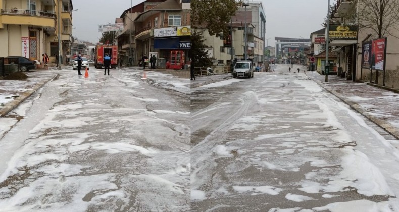 DÜZCE (İHA) – Düzce’nin Cumayeri ilçesinde korona virüs salgını ile mücadele kapsamında, cadde ve sokaklar köpüklü suyla yıkanarak dezenfekte edildi.