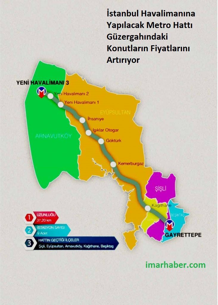 İstanbul Havalimanı’nı şehir merkezine bağlayacak metro hattının ilk etabının 2019’da, ikinci etabın ise 2021’de hizmete gireceği belirtiliyor. Toplam mesafe yaklaşık 70 kilometre olan hattın Gayrettepe-İstanbul Yeni Havalimanı yönü 37,5 kilometre olacak; Beşiktaş, Şişli, Kağıthane, Eyüp ve Arnavutköy ilçelerinden geçecek.