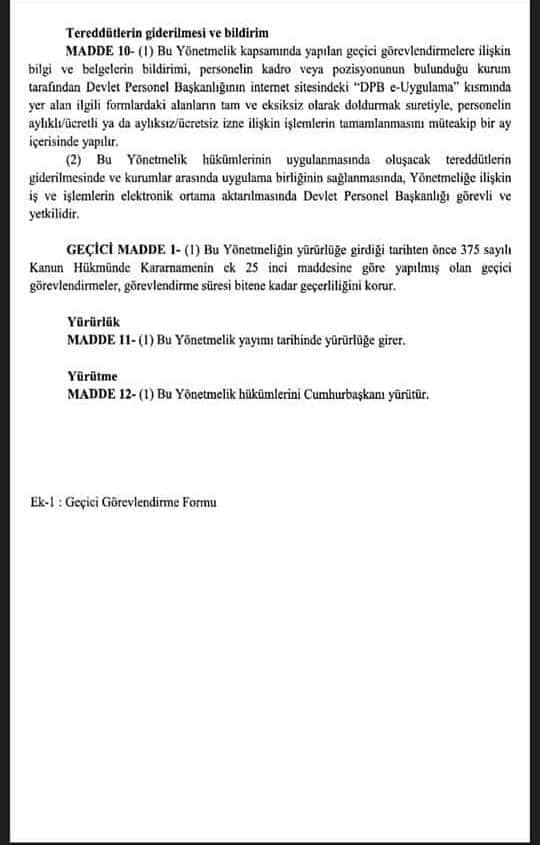 Adaylık veya deneme süresinde olan personel ile bazı kanun ve kanun hükmünde kararnameler kapsamında istihdam edilenlerin memur kadrolarına atamaları yapılana kadar geçici olarak görevlendirilmesi yapılmayacak.