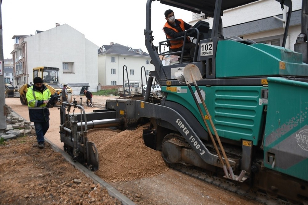 İnegöl ilçesinde, bir binanın yıkılmasıyla tam anlamıyla ulaşıma açılan Osmaniye Mahallesi Karlıova Sokakta asfalt ve kaldırım çalışmaları sürüyor.
