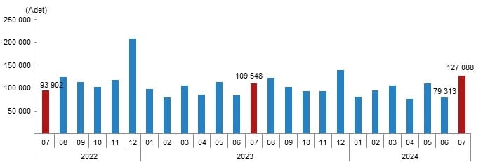Buna göre, Türkiye genelinde konut satışları temmuz ayında bir önceki yılın aynı ayına göre yüzde 16 artarak 127 bin 88 oldu. Konut satış sayısının en fazla olduğu iller sırasıyla 19 bin 47 ile İstanbul, 11 bin 364 ile Ankara ve 6 bin 659 ile Antalya olurken, en az olduğu iller sırasıyla 61 ile Ardahan, 64 ile Hakkâri ve 77 ile Bayburt oldu.