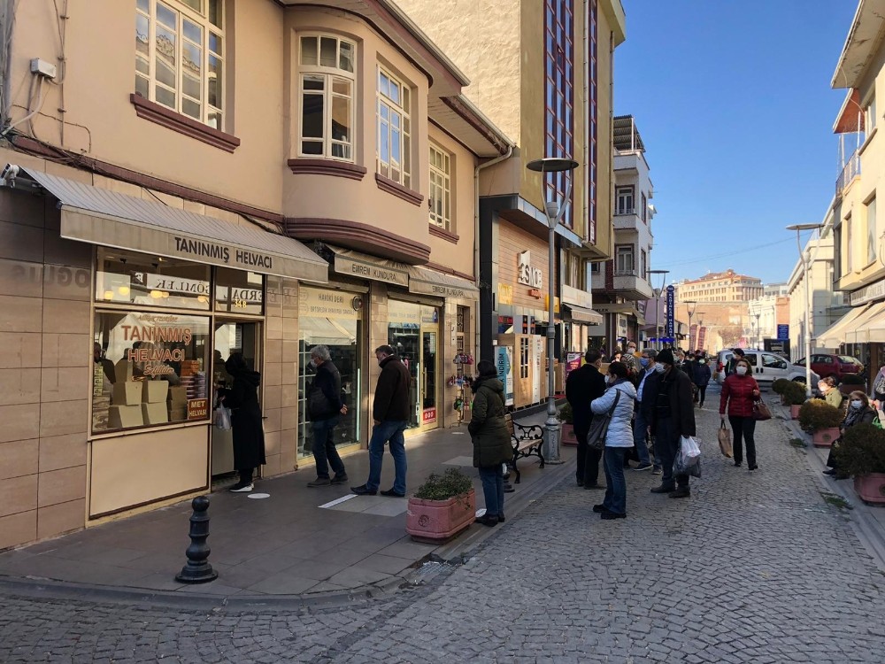 Eskişehir’de, ülke genelinde pandemi tedbirleri kapsamında uygulanacak olan sokağa çıkma yasağına hazırlık yapan vatandaşlar, merkezdeki bazı gıda ürünleri satan işyerlerinin önlerinde uzun kuyruklar oluşturdu.