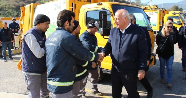 Belediye-İş Sendikası işçi temsilcileri de Söke Belediye Başkanı Levent Tuncel’e çiçek takdim ederek, emekçinin yanında olduğu için ayrıca teşekkür ettiler.